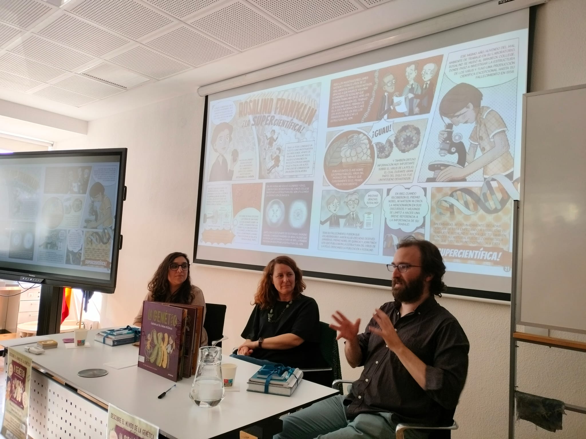 En la presentación del libro han participado sus autores, Pablo José Barrecheguren e Isa Loureiro, junto a la subdirectora de Terapia Celular y Medicina Regenerativa del Instituto, Noa Laguna, y a la directora de la BNCS-ISCIII, Cristina Bojo. Niños, niñas, padres, madres y demás público han disfrutado de la presentación y de un taller para comprender mejor qué es la genética, y de una pequeña visita a algunas de las instalaciones del Instituto.